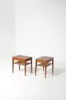 Paire de tables de chevet Teck et osier tressé Édition Haslev Møbelsnedkeri A/S Modèle créé vers 1955 H 50 × L 50 × P 35 cm