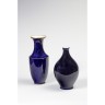 SEVRES Deux vases en porcelaine bleu de four dont un à réhauts de filets dorés. un avec " S75" et l'autre "S96" et "doré à Sèvres 97" H : 27 et 33 cm