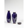Deux vases vases en porcelaine bleu de four à décor de fleurs et filets doré.