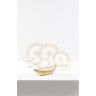 Navette en porcelaine du service du chateau d'Eu à décor polychrome au centre d'une rosace en or, l'extérieur decoré d'attributs façon camée dans des cartouches à fond brun sur fond vert orné de rinceaux feuillagés en or.