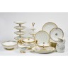 Partie de service en porcelaine à décor doré de frises et oeillets comprenant :