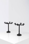 Paire de chandeliers à quatre branches Fonte Édition Kockums Marquage débossé ‘SIG P KOCKUMS’ et datés ‘1965’ sous la base Modèle créé en 1965 H 40×L 35,5×P 35,5cm