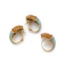 Parure "Serpents" en or jaune 18k (750‰) guilloché, rehaussé de turquoises, de rubis et de diamants taillés en rose et d'émail cloisonné.