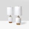 Stilnovo Modèle n° 8055 Paire de lampes de table Verre, laiton, métal laqué et abat-jour en parchemin Edition Stilnovo (étiquette sur l'une) Date de création : années 1960 H 72,5 × Ø 20 cm