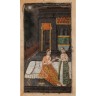 Style moghol, XXème siècle - Rajah et deux jeunes femmes assises - Une femme assise sur son lit avec sa servante Deux miniatures indiennes sur page de manuscrit 14 x 7 cm 16 x 9 cm
