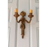 Suite de quatre appliques en bronze doré à deux lumières, à décor de feuillages et vase de fleurs. Style Louis XVI, XIXe siècle H 39cm