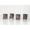 Suite de quatre timbales tripodes en argent à bordure godronnée, pieds en griffe à attaches de tête de lion Poids env. 350 g.