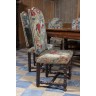 Suite de six chaises à haut dossier plat en noyer tourné, le piètement à entretoise, recouvertes de tapisserie au point. Style Louis XIII H 109×L 52×P 43cm