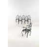 Suite de six fauteuils de jardin en fer forgé laqué vert à dossier ajouré à motif de rinceaux, pieds recourbés. Travail français des années 40 H 105 x L 54 x P 45 cm