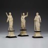 Suite de trois apôtres, saint André, saint Thomas et saint Simon en ivoire sculpté en ronde-bosse. Debout, ils sont revêtus d’une lo...