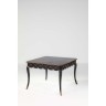 Table carrée en bois noirci, la ceinture à décor de croisillons et clous reposant sur quatre pieds cambrés terminés par des sabots en bronze doré, Travail du début du XXe siècle H91 x L110 x P110 cm (tâches sur le plateau)
