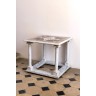 Table carrée en marbre blanc, le plateau en marqueterie de marbres de couleur, reposant