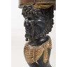 Table circulaire en acajou et bois noirci et doré, le plateau de marbre noir de Belgique mouluré reposant sur des pieds en protomes de satyre terminés par des sabots ; manque la tablette d’entretoise. Début du xIxe siècle (Accidents et manques) h 80 × Ø 96 cm