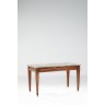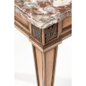 Table de milieu en acajou et bronzes dorés, reposant sur des pieds en gaine ; le plateau de marbre rouge des Flandres.
