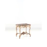 Table de milieu en bois peint, le dessus à l’imitation du marbre reposant sur des pieds cambrés réunis par une entretoise surmontée d’un motif rocaille. Allemagne, XVIIIe siècle. H76×L80×P57cm Accidents et restaurations.