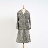 Tailleur jupe en astrakan gris avec col en vison gris. On y joint 2 paires de gants en peau gris dont une bordée de vison.