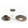 (Poids : env. 110 g.) et un flacon ovale en verre couvercle argent