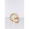Tasse et sa sous-tasse en porcelaine blanche et doré de motifs feuillagés et floraux, la tasse est ornée d'un portrait de femme en grisaille dans un médaillon