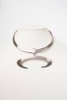 Années 1970 Collier torque en argent (925‰) retenant un pendentif en forme de cornes stylisées Signé Diamètre intérieur : 11,5 cm Dimensions du pendentif : 5,5 x 9,5 cm Poids : 119,2 g