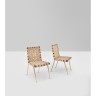 Terence Harold Robsjohn-Gibbings (1905-1976) Paire de chaises Noyer, toile et laiton Édition Widdicomb Modèle créé en 1952 H 89 × L 53 × P 66,5 cm