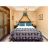 Cabecero, dosel, cortinas, pareja de mesillas, mesa de TV