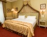 Tête de lit, 118x230 cm, deux chevets, 66x44x34 cm, lampadaire H 185 cm, petite table rectangulaire, 72x62x70 cm, couvre lit et paire de rideaux