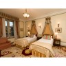 Cabecero, dosel, mesilla, lampara de sobremesa y cortinas