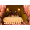 Tête de lit, paire de rideaux, couvre lit, deux tables de chevet et deux lampes