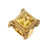 Bague en or jaune 18k (750‰) à plateau ajouré ornée d'un béryl jaune de taille princesse entouré de diamants taille brillant