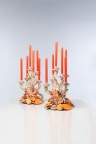 Paire de bougeoirs - Modèle ‘Pour une Table, Orange’ Pièce unique Coquillages, nacre et laiton Modèle créé en 2005 H 43 × Ø 31,5 cm