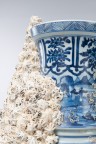 Vase - Modèle ‘Sous emprise’ Pièce unique Porcelaine, coquillages, bois et résine Modèle créé en 2024 H 45×L 39×27 cm