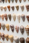 Tableaux - Modèles ‘Cônes’ et ‘Cypraeas’ Pièces uniques Poirier noirci et coquillages (conidae et cyprea) Étiquettes ‘Thomas Boog’ sous les bases Modèle créé en 2024 H 71 ×L 30×P 19 cm