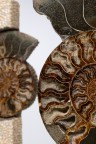 Paire de lampes de table - Modèle ‘Ammonites’ Pièce unique Laiton patiné, bois, ammonite, coquillages et textile Modèle créé en 2022 H 73,5 × L 32,5 × P 15 cm