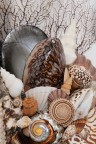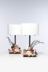 Paire de lampes - Modèle ‘Dark Shells’ Pièce unique Laiton patiné, coquillages et textile Modèle créé en 2008 H 63 × L 43 × P 24 cm
