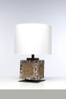 Lampe de table - Modèle ‘Cube & Starfish’ Collection ‘Shelleye’ Laiton patiné, coquillages, nacre verte et étoiles de mer Modèle créé en 2005 H 58,5 × L 38 × P 38 cm