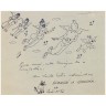 Tintin et ses amis « Aux anges » Encre de Chine pour ce dessin signé qui est en fait une dédicace très élaborée, accompagnant des remerciements à des amis. On y retrouve Tintin, Milou, Haddock et les Dupondt, au septième ciel, sans aucun doute. Le dessin est signé Hergé, Hergée pour son épouse, et Thaï-K’hé pour leur chat siamois. Très bon état. 12 x 15 cm.