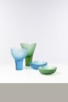 Deux coupes et deux vases en verre dits 'Battuto' Verre teinté Édition Venini Modèle créé vers 1962 H 30ר 21,5cm H 26ר 19,5cm H 8ר 21,5cm H 7ר 20,5cm