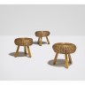 Tony Paul (1918-2010) Suite de trois tabourets Noyer et rotin Date de création: années 1950 H 30,5 ר 35,5cm