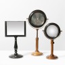 Travail anonyme Ensemble de trois miroirs sur piédouche Bois, métal et verre miroité Date de création : vers 1890-1900 H 69 cm ; H 51 cm ; H 50 cm
