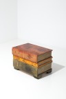 Table d'appoint roulante figurant des livres, ouvrant en façade par deux tiroirs Bois gainé de cuir H 48×L 65×P 46cm
