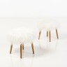 Travail danois Paire de tabourets Bois et peau de mouton Date de création : vers 1950 H 48 × Ø 51 cm