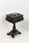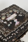 Bois noirci, décor en laque noire et or, incrustations de nacre, intérieur gainé de velours