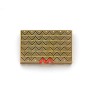 Boîte de beauté en or jaune 18k (750‰) à décor géométrique émaillé noir (accidents, manques et rayures). L'intérieur est compartimenté pour contenir deux boîtes à fard, un étui de rouge à lèvres et un miroir (accidents). Le poussoir est orné de deux éléments en corail (petits manques) rehaussés de diamants taillés en rose (manque un).