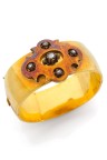 Bracelet jonc ouvrant en or jaune 18k (750‰) orné d'un motif cruciforme en applique rehaussé de diamants taillés en rose (petits chocs) Circonférence : 19,7 (7 3/4)Poids brut : 59,6 g