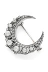 Broche "Croissant de lune" en or blanc 18k (750‰) sertie de diamants ronds de taille ancienne et de diamants taillés en rose Porte un numéro gravé 604 Dimensions : 3 x3 cm Poids brut : 7,7 g