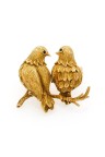 "Les inséparables" Broche en or jaune 18k (750‰) très finement ciselé, à décor d'un couple d'oiseaux sur une branche Un petit saphir et une émeraude pour animer leur regard Dimensions : 3 x 3,5 cm Poids brut : 9,5 g