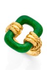 Bague en fils d'or jaune 18k (750‰) torsadés imitant la corde retenant une boucle émaillée vert Tdd : 57,5 Poids brut : 14,9 g