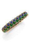 Magnifique bracelet ruban en forme de tresse en or jaune 18K (750‰) à maillons émaillés vert et bleu montés sur rail de chaîne palmier Poinçons de Maître Orfèvre et de titre Circonférence : 17 cm Poids brut : 89,4 g