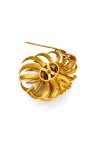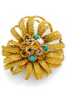 Broche "Fleur" en or jaune18k (750‰) à grenetis ornée au centre de turquoises cabochon et de diamants ronds (manques) Dimensions : 4,5 x 4,5 cm 35,7 g