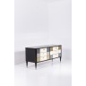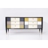 Travail Italien Commode Bois laqué, verre et laiton doré Tampon au dos 1091 Circa 1960 H 74 x L 160 x P 52,5 cm